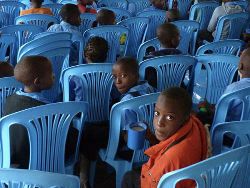 Children now sit in comfort to enjoy their cup of porridge at mid-morning break